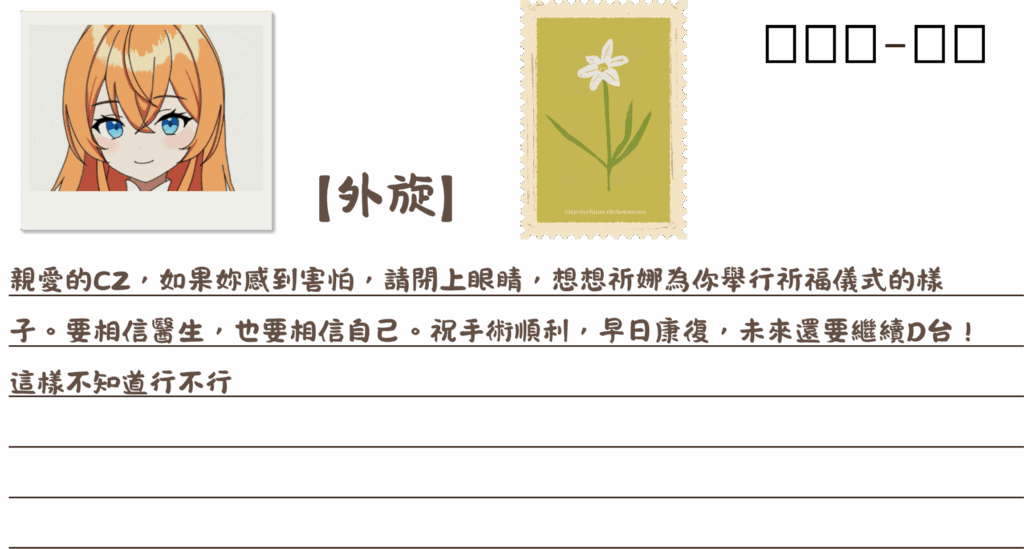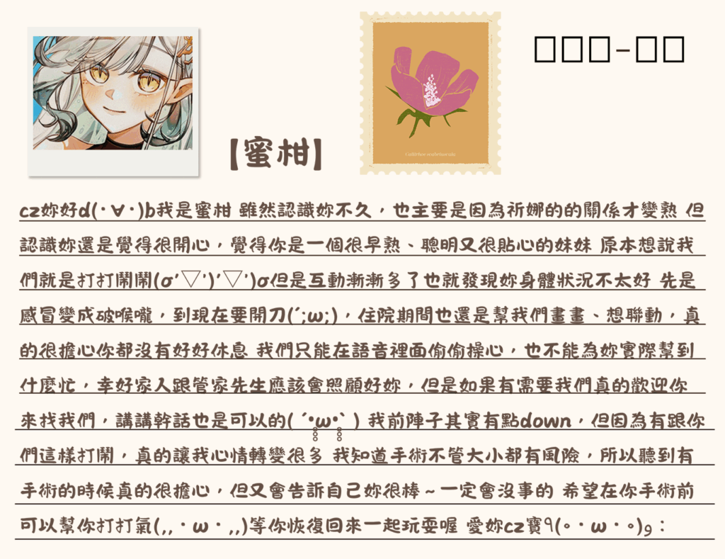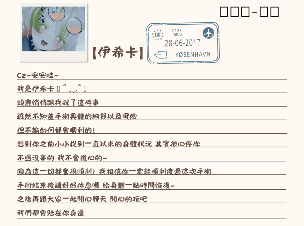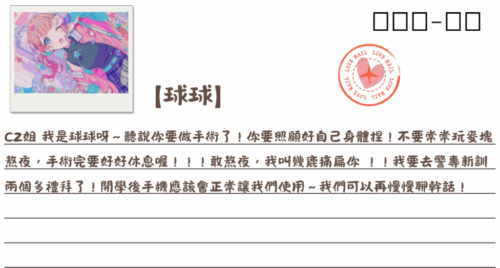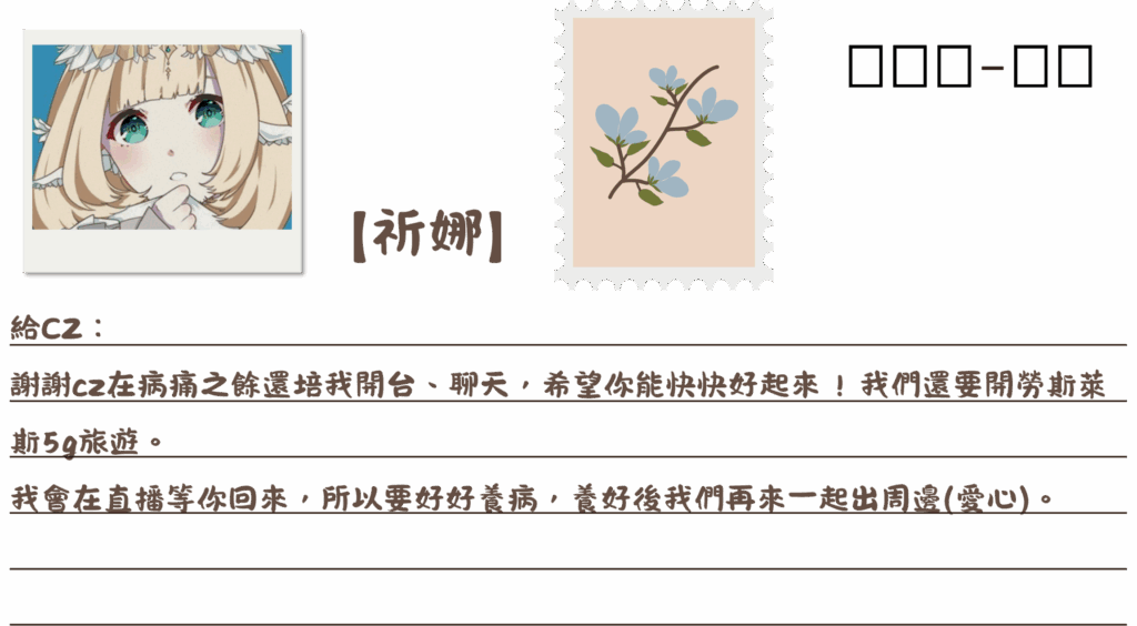 祝福CZ早日康復手術順利( ゚∀゚)つ≡≡≡♡♡♡)`ν゜)グシャ